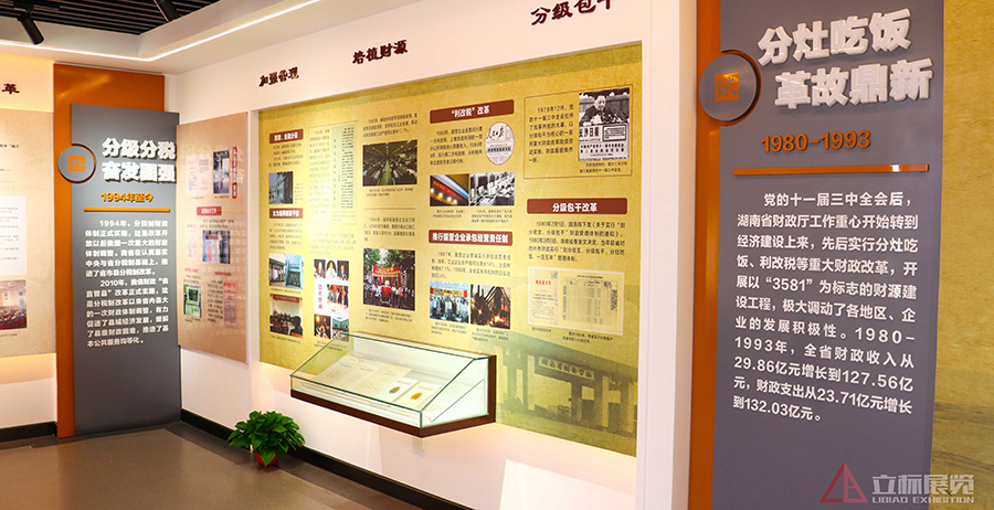 湖南省財(cái)政廳歷史陳列館是一個(gè)湖南省財(cái)政歷史的象征和文化建設(shè)的重要標(biāo)志,是展示歷史、文化傳承的重要窗口。 展館主要以現(xiàn)代電子觸摸屏與傳統(tǒng)圖文展板相結(jié)合,配以部分有歷史感的實(shí)物,回顧省財(cái)政廳的風(fēng)雨歷程,展示財(cái)政工作對湖南經(jīng)濟(jì)社會發(fā)展所發(fā)揮的宏觀調(diào)控、政策保障和資金支持作用以及財(cái)稅文化的深厚底蘊(yùn)。綜合采用實(shí)物、圖片、文字、觸摸屏手段等方式展現(xiàn),按照“內(nèi)容實(shí)事求是、文字準(zhǔn)確精煉、設(shè)計(jì)前瞻新穎、布展美觀大方、通盤留有余地”思路進(jìn)行。