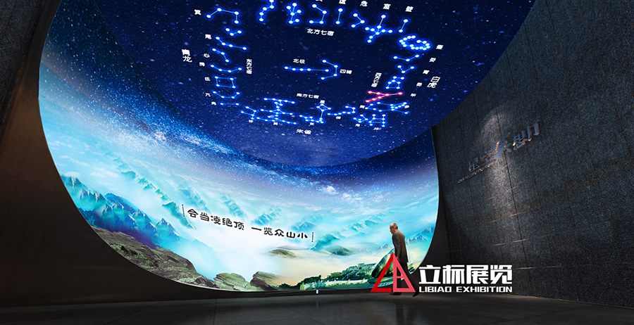 在展館設(shè)計(jì)中,我們以多方的廣闊視角,以“高山仰止壽岳衡山”為設(shè)計(jì)概念主題,以奧運(yùn)會(huì)、世博會(huì)為標(biāo)志的現(xiàn)代展覽語法為設(shè)計(jì)藍(lán)本,原創(chuàng)出從空間語匯的獨(dú)特到裝飾材料的精致展陳形式來,打造出“典雅、厚重、前沿、科技”的展示空間氛圍,構(gòu)建出壽文化取得的成果以及對南岳壽文化傳播的決心。