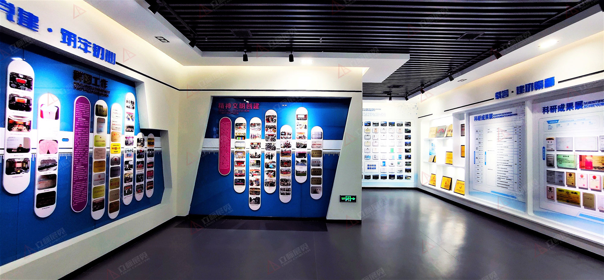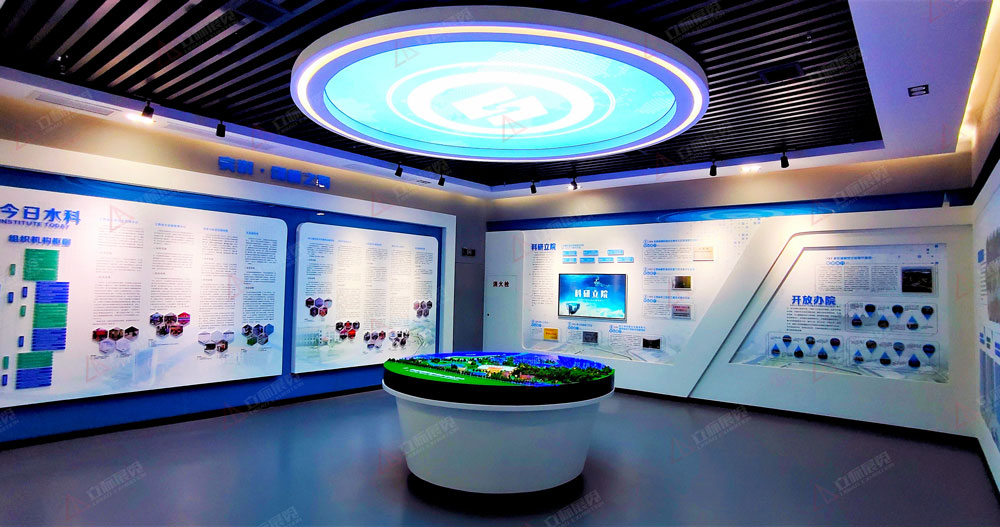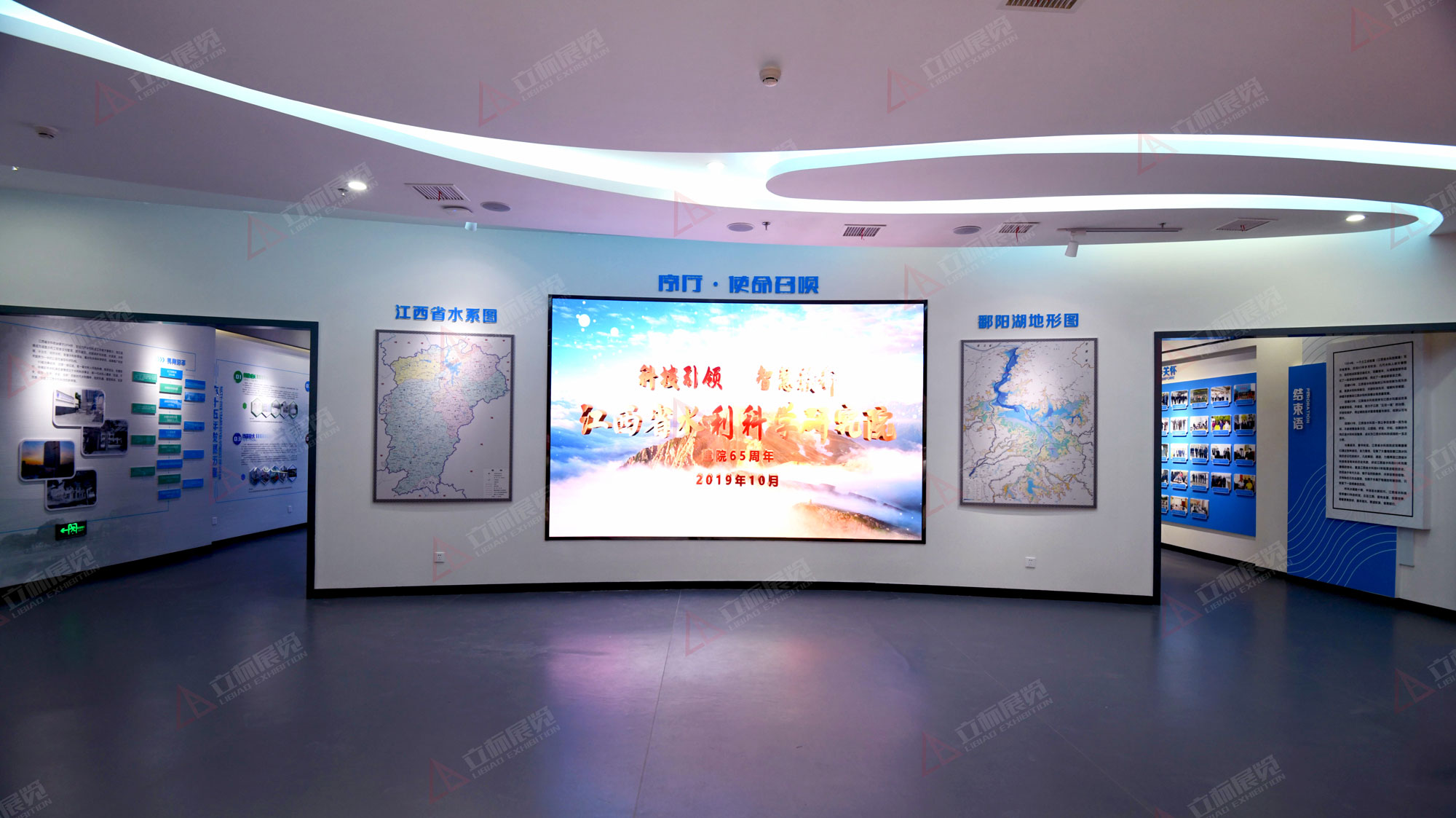 展館突出“水”元素,強(qiáng)化“水”主題,展現(xiàn)“水”文化特色,設(shè)計(jì)元素契合水科院文化特色綜合運(yùn)用聲光電,結(jié)合投影、場景裝置以及互動裝置等,展示形式多樣化豐富天花、地面、界面的色調(diào)、造型表現(xiàn),各個版塊空間的調(diào)性有所區(qū)分,使小空間的主題演繹異彩紛呈,使觀展節(jié)奏更加張弛有度。