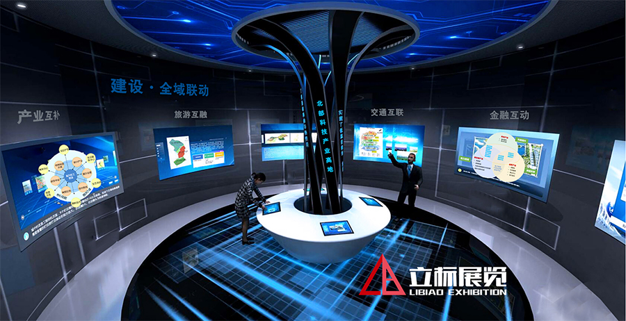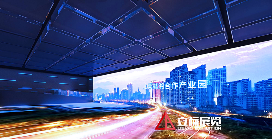 本館在展板、模型、實(shí)物陳列等常見形式之外,綜合運(yùn)用聲、光、電、圖像、三維動(dòng)畫展示技術(shù)等,重點(diǎn)打造“巨幅LED主題影院”、“球幕多屏聯(lián)動(dòng)平臺(tái)”、“L幕數(shù)字沙盤”、“LED條形光電創(chuàng)意柱”等多媒體展項(xiàng),使各篇章的主題演繹異彩紛呈,觀展的情緒和體驗(yàn)富于變化,生動(dòng)、形象地展示園區(qū)的飛速發(fā)展和規(guī)劃建設(shè)成果。