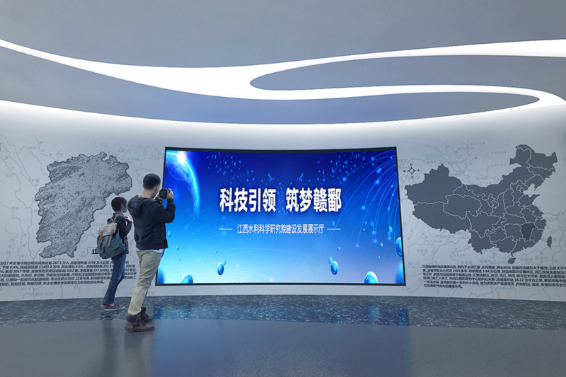 體驗(yàn)感十足的弧幕影院,讓每個(gè)觀眾足不出館的沉浸在水科院的科研道路上,漫步在水科院歷史文化的長(zhǎng)廊里。