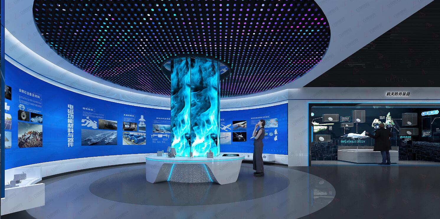 展館以多維度交互方式與觀眾對話,用數(shù)字媒體技術(shù)打造“沉浸式”視覺體驗,讓觀眾不再“袖手旁觀”,真正以參與者的身份走進湖南航天的“黑科技”秀場,了解航天防務(wù)新材料與新裝備,并關(guān)注用航天科技創(chuàng)造美好生活。